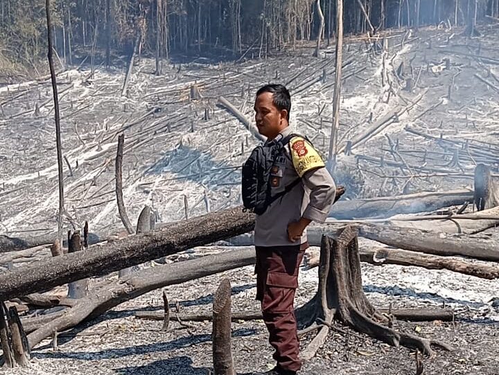 Bhabinkamtibmas Tinjau Lahan Kebun Warga yang Terbakar Akibat Pembersihan lahan