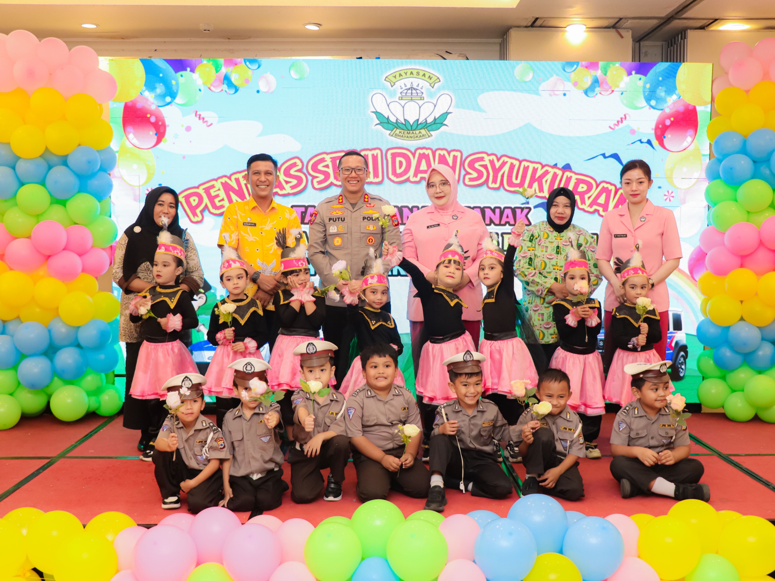 Dalam sambutannya, AKBP Putu menyampaikan bahwa momen ini adalah saat yang istimewa bagi kita semua khususnya anak-anak yang telah menyelesaikan pendidikan di TK ini.