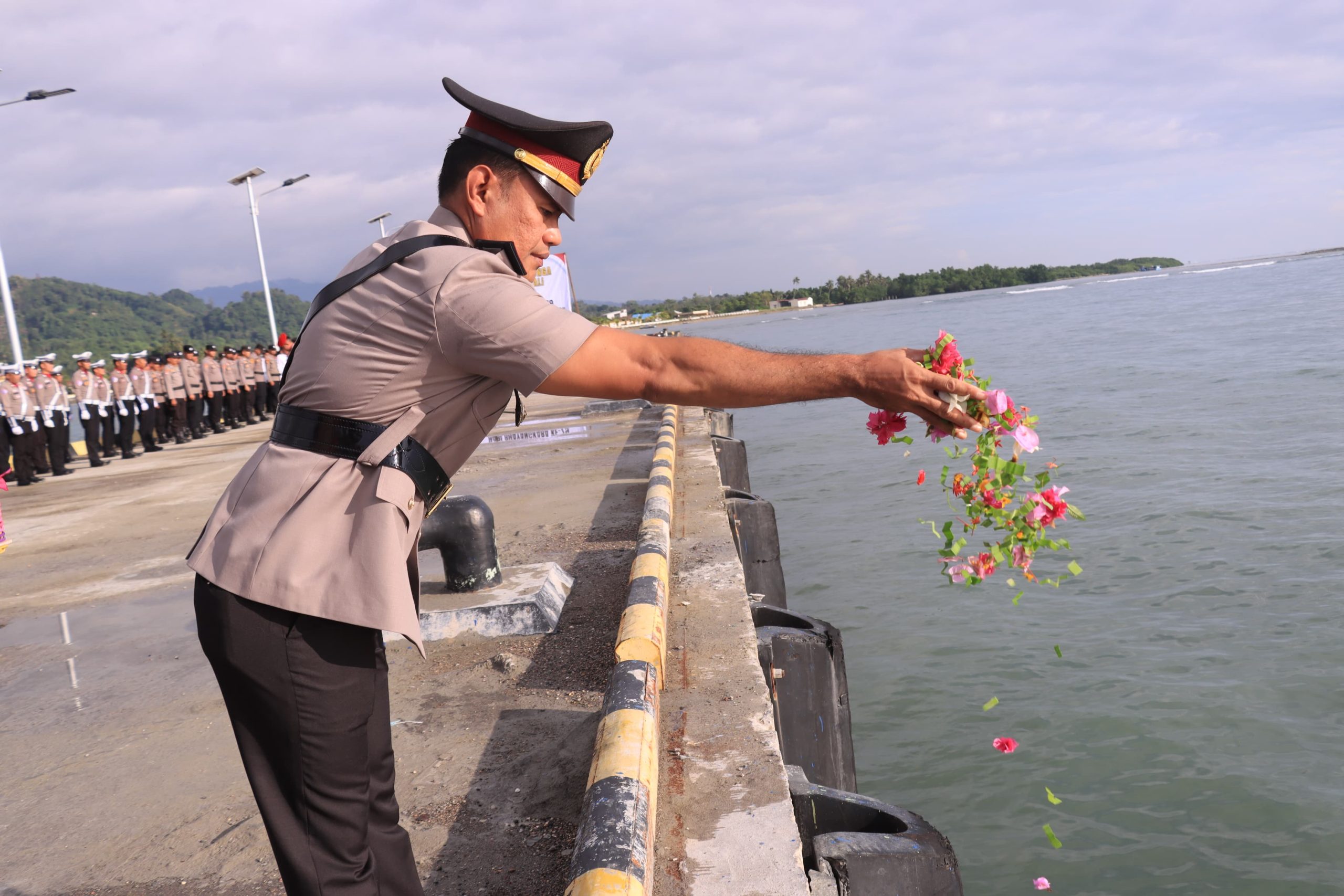 Polres Morowali Gelar Upacara Tabur Bunga di Pelabuhan Bungku Peringati HUT Bhayangkara ke-79