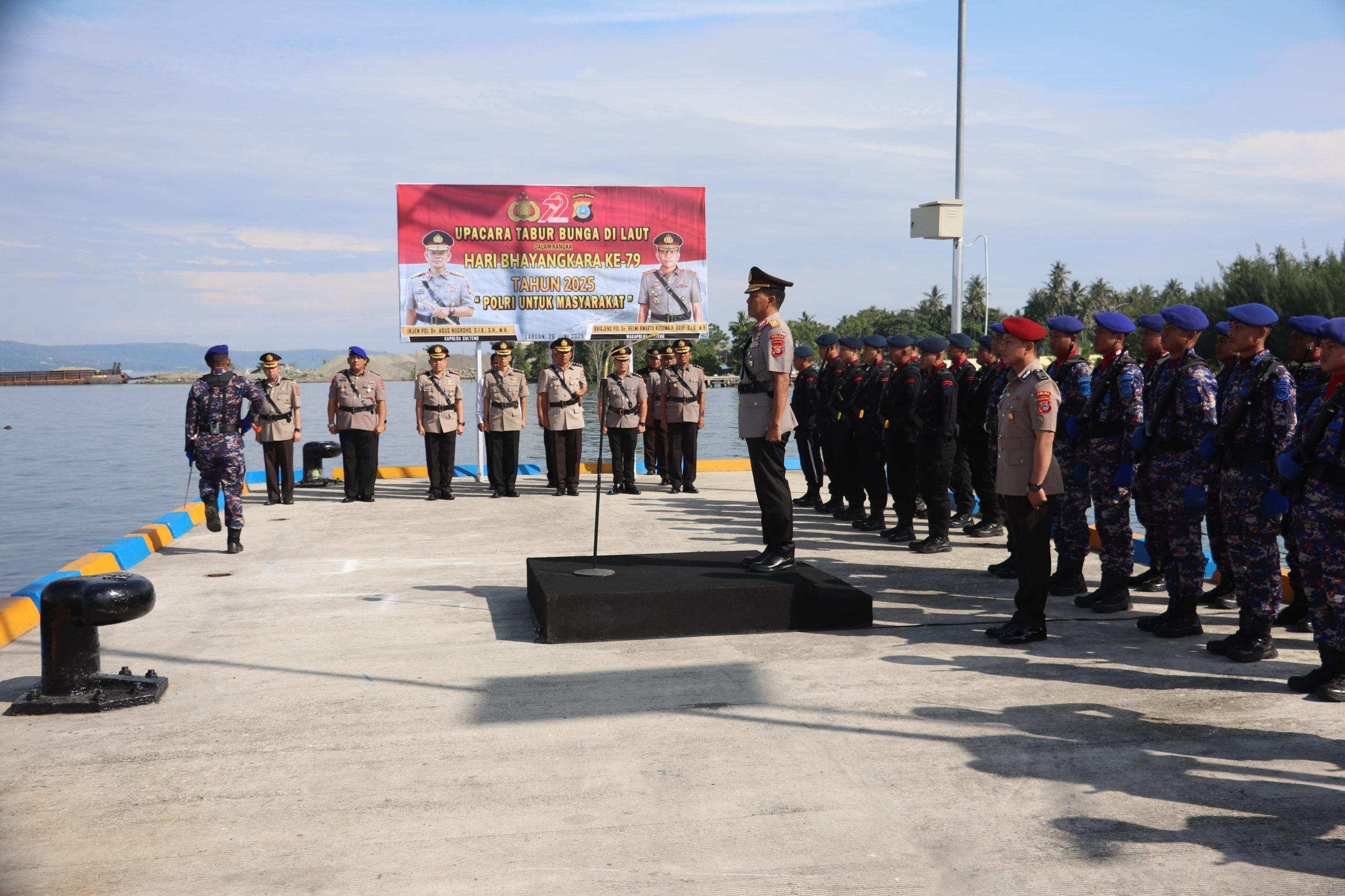 Upacara Tabur Bunga di Laut, Wakapolda Sulteng Jadi Irup Dalam Rangka HUT Bhayangkara Ke-79 Tahun