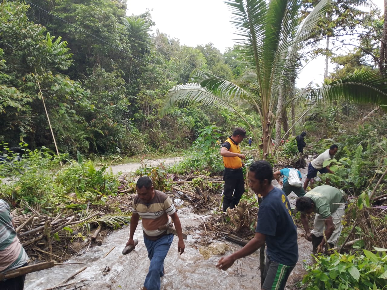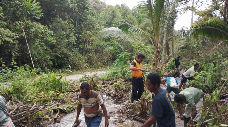 Polsek Totikum dan Masyarakat Bahu-Membahu Perbaiki Jalan Provinsi di Desa Tonuson