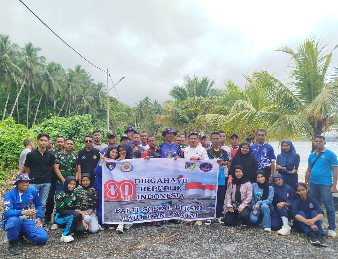 Tribratanews, Banggai Laut – Dalam rangka memperingati Hari Ulang Tahun Kemerdekaan Republik Indonesia ke-80, KP. XIX-1003 Pos Polairud Unit Banggai Laut bersama awak kapal (ABK) melaksanakan kegiatan bersih pantai di pesisir Pantai Salatiga, Desa Dodung, Kecamatan Banggai Tengah, pada Jumat (15/8/2025).