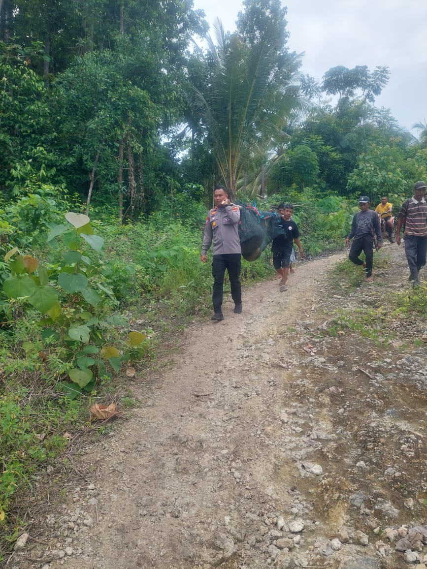 Kejadian tersebut kemudian dilaporkan ke Polisi. Dibawah pimpinan IPDA Andi, Korban selanjutnya dievakuasi oleh warga bersama personel Polsek Bunta, ke perkampungan.