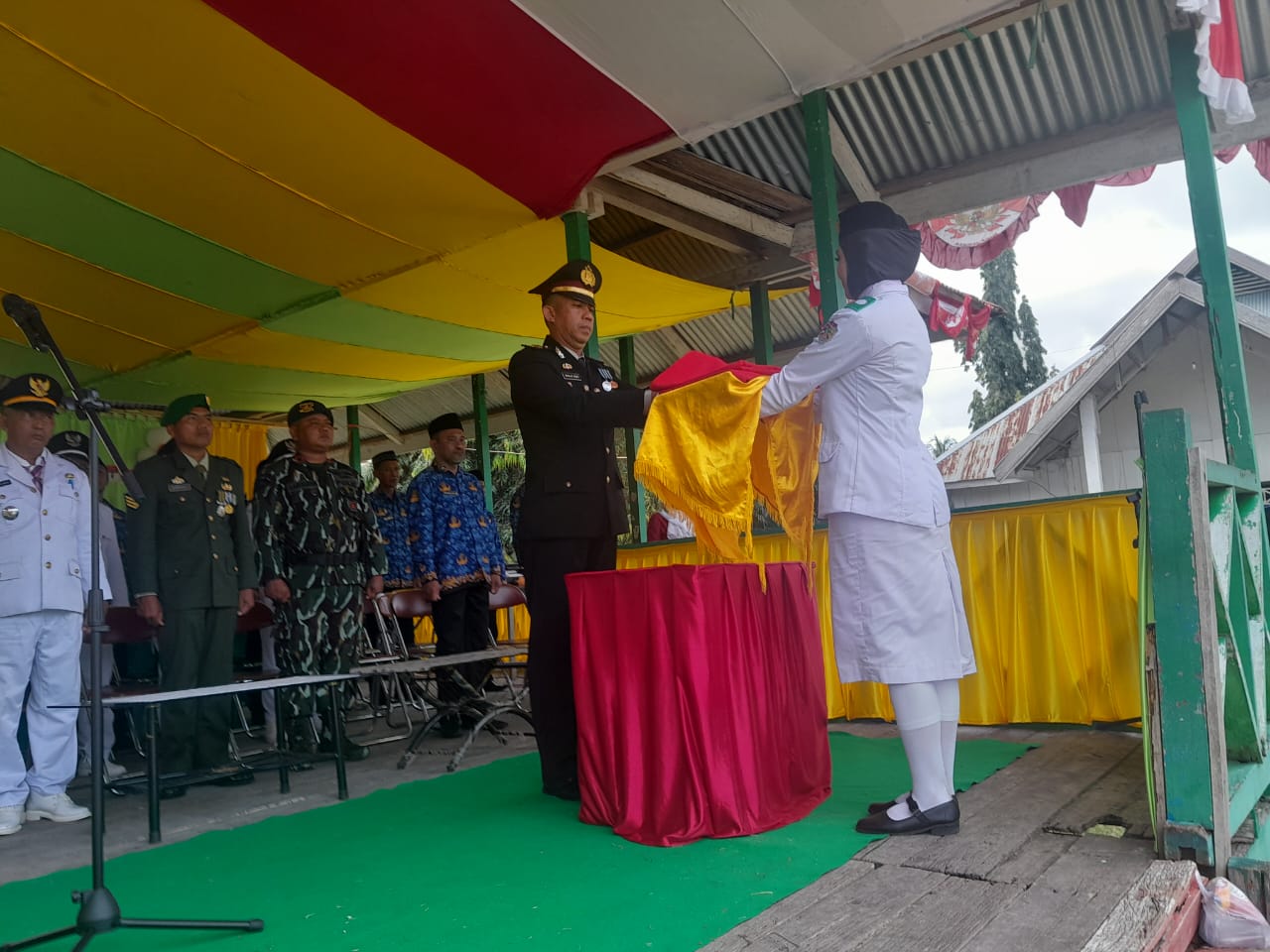 Kapolsek Ulubongka Pimpin Upacara Penurunan Bendera HUT ke-80 RI di Ulubongka