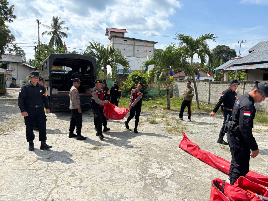 Poso-Pasca gempa bumi berkekuatan 6,0 magnitudo yang mengguncang wilayah Poso, pada Selasa pagi, 19 Agustus 2025 pukul 09.50 WITA, personel gabungan dari Polres Poso dan Tim SAR Brimob Batalyon B Pelopor segera bergerak cepat melakukan upaya tanggap darurat. Salah satu langkah awal yang dilakukan adalah pendirian tenda pengungsian di halaman Madrasah Ibtidaiyah (MI) Alkhairat, Desa Patiwunga, Kecamatan Poso Pesisir Selatan, Kabupaten Poso.19/8/25