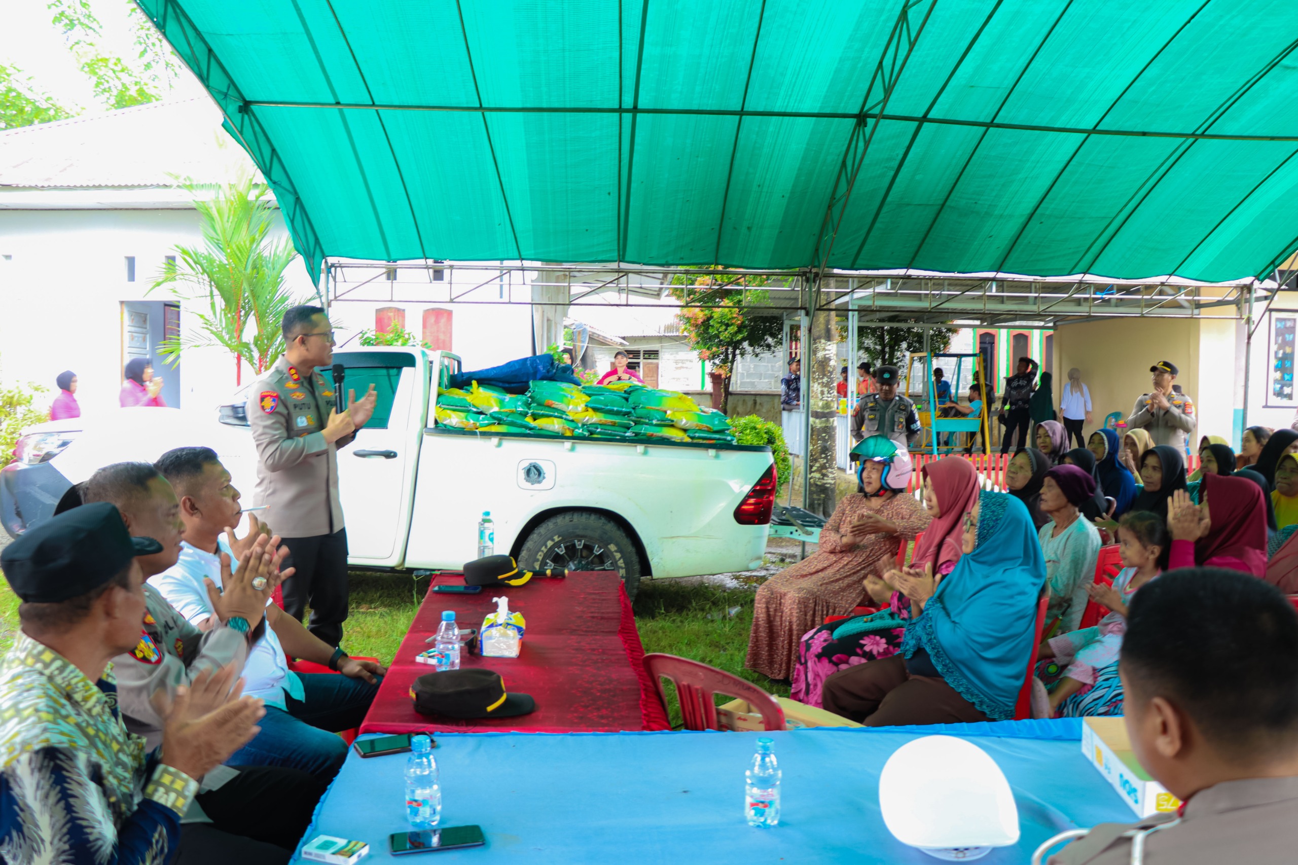 “Kami siapakan 5 ton beras (132 karung) dalam kemasan 5 kg. Khusus hari ini kami berikan subsidi Rp. 10 ribu / pack,” ujar Kapolres Banggai.