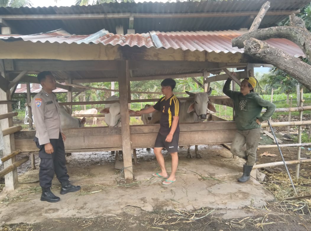 Selain itu, Bhabinkamtibmas juga mengingatkan masyarakat untuk lebih waspada dalam menjaga hewan ternak, khususnya sapi, dengan membuat kandang yang aman serta mengawasi secara rutin, guna mencegah terjadinya pencurian maupun gangguan keamanan lainnya.