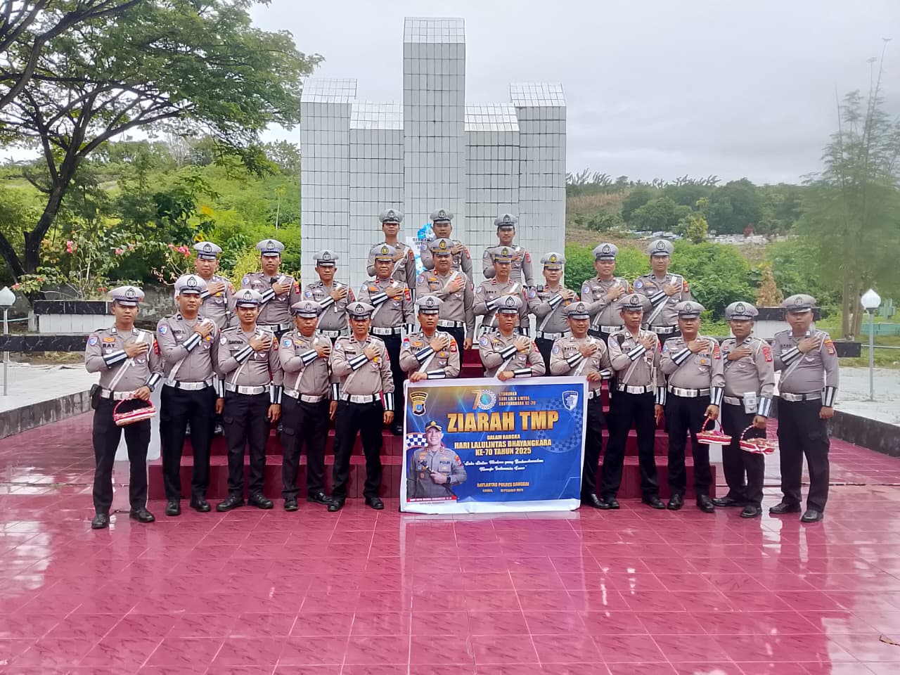 Ziarah serta tabur bunga yang dilakukan oleh seluruh jajaran Satlantas Polres Banggai ini dilakukan dalam rangka rangkaian kegiatan Hari Ulang Tahun (HUT) Lalu Lintas Polri ke-70.