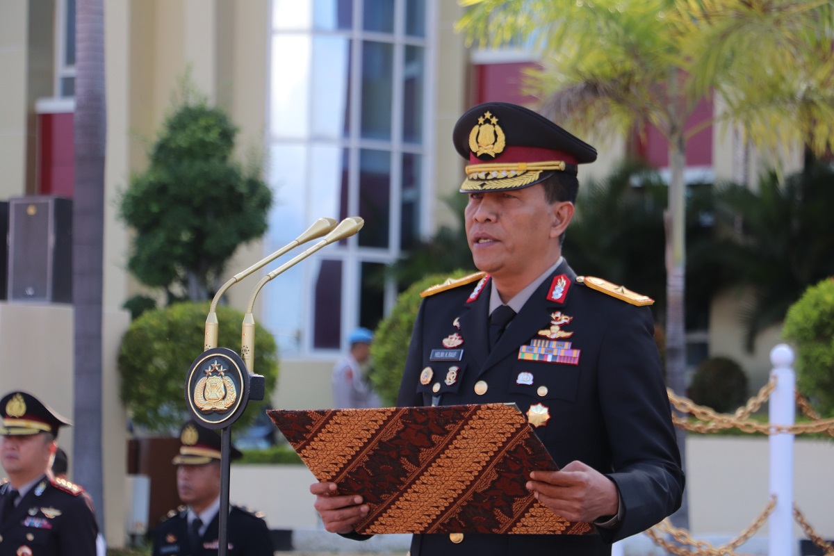 Upacara tersebut dipimpin oleh Kapolda Sulteng Irjen Pol Dr Agus Nugroho, S.I.K., S.H., M.H., yang diwakili Wakapolda Brigjen Pol Dr Helmi Kwarta Kusuma Putra Rauf, S.I.K., M.H.