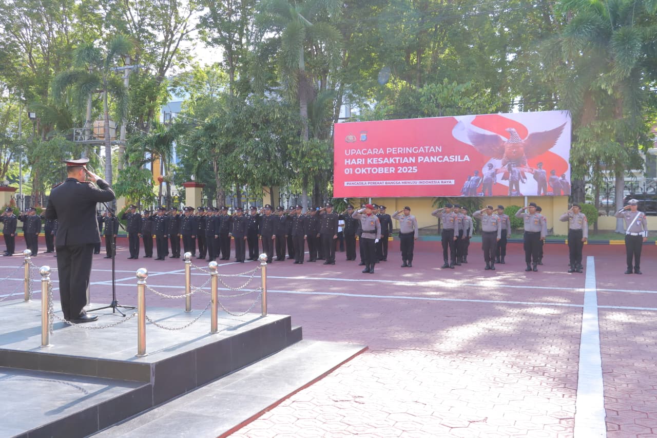 Tribratanews Polresta Palu — Kapolresta Palu, Kombes Pol Deny Abrahams, S.H., S.I.K., M.H. memimpin langsung upacara peringatan Hari Kesaktian Pancasila yang dilaksanakan di Lapangan Apel Polresta Palu, Rabu (1/10/2025) pagi.