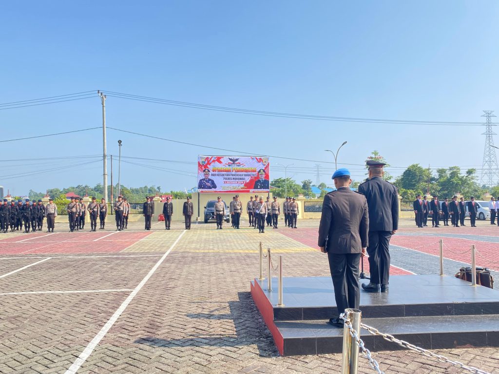tribratanews, Morowali – Kepolisian Resor (Polres) Morowali Polda Sulawesi Tengah (Sulteng) melaksanakan upacara peringatan Hari Kesaktian Pancasila pada Rabu, 1 Oktober 2025, bertempat di lapangan apel Mako Polres Morowali, Kompleks Perkantoran Funuansingko, Kecamatan Bungku Tengah, Kabupaten Morowali.