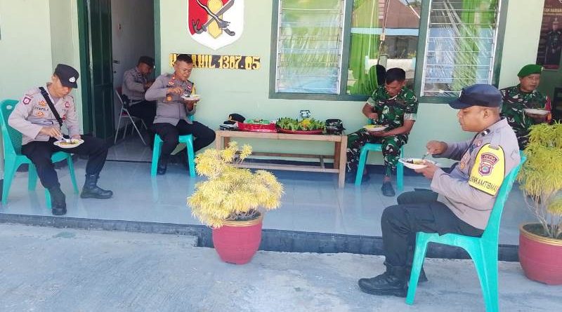 Momen ini dilanjutkan dengan acara makan bersama antara anggota Polsek dan Koramil, menampilkan potret soliditas dan kebersamaan yang menjadi pilar utama keamanan daerah.