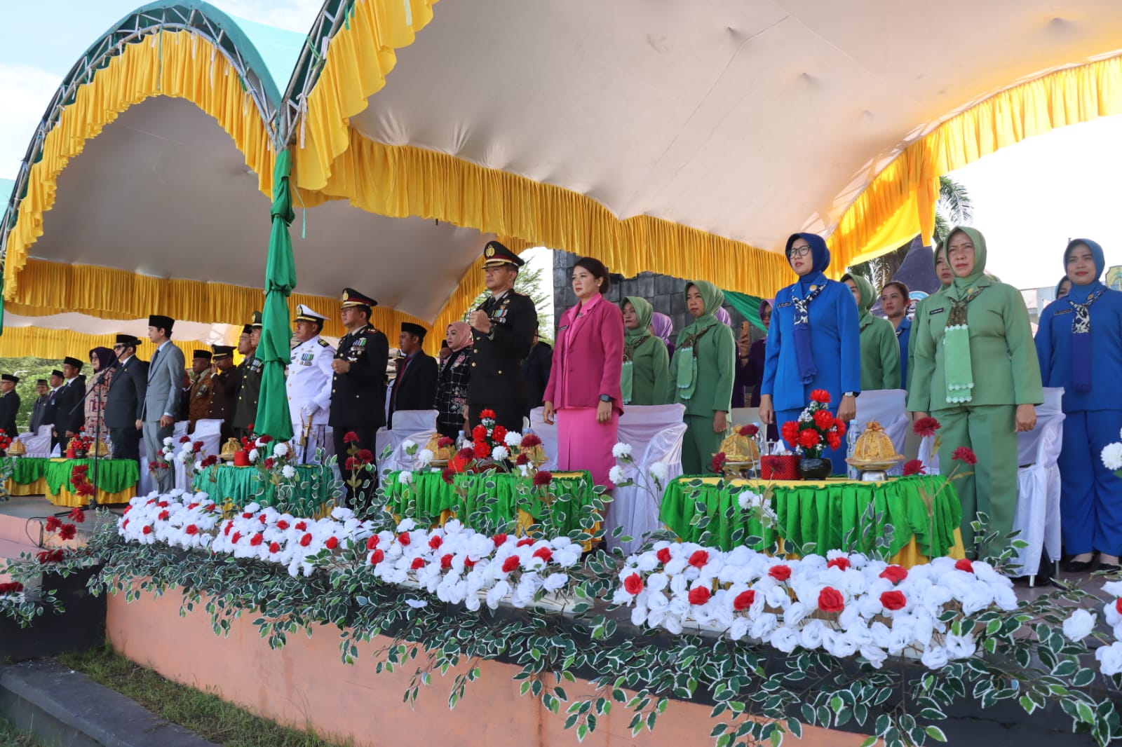 Upacara HUT TNI Ke-80 berlangsung dengan khidmat, melibatkan unsur TNI AD, AL, dan Polri, serta dihadiri oleh jajaran Forkopimda, tokoh masyarakat, tokoh agama, organisasi masyarakat, hingga pelajar yang turut serta memberikan penghormatan atas pengabdian panjang TNI kepada bangsa dan negara.