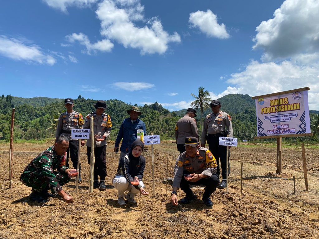 Kapolsek Baolan Hadiri Pencanangan Kegiatan Perdana Bumdes Pidota Sasaakan: Penanaman Jagung, Penaburan Ikan, dan Penggemukan Ternak Sapi