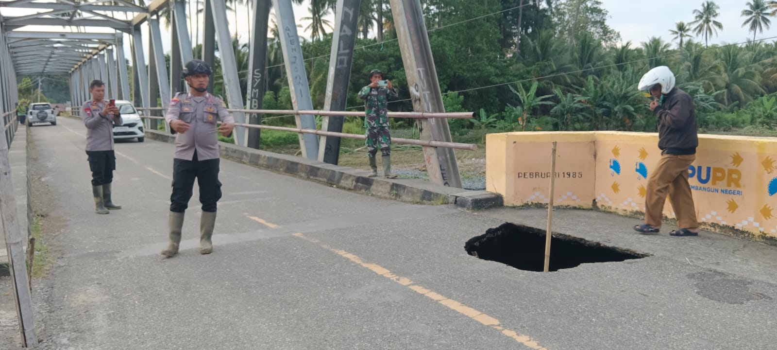 Tribratanews.sulteng.polri.go.id – Kondisi jalan berlubang di Trans Palu- Luwuk tepatnya Jembatan Desa Toima Kecamatan Bunta Kabupaten Banggai menjadi perhatian serius karena berpotensi mengganggu keamanan, keselamatan, ketertiban dan kelancaran lalu lintas.