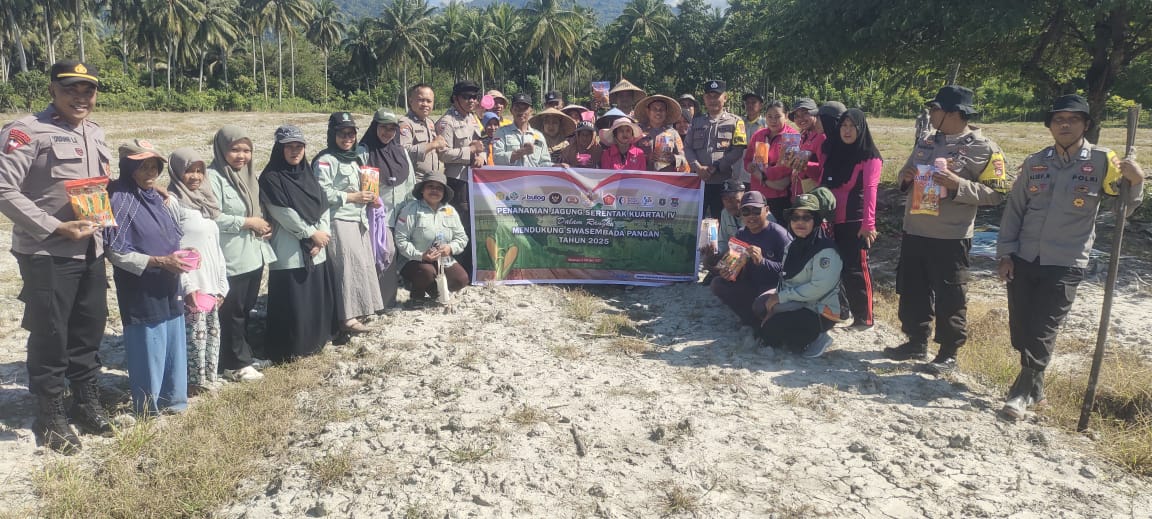 Parigi Moutong, Tribratanews – Dalam rangka mendukung program pemerintah di bidang ketahanan pangan dan meningkatkan kesejahteraan masyarakat melalui sektor pertanian, Polsek Tomini Polres Parigi Moutong melaksanakan kegiatan penanaman jagung serentak kuartal IV pada Rabu, 08 Oktober 2025 pukul 09.00 WITA. Kegiatan berlangsung di lahan milik Polri yang berlokasi di Dusun II, Desa Mepanga, Kecamatan Mepanga, Kabupaten Parigi Moutong.
