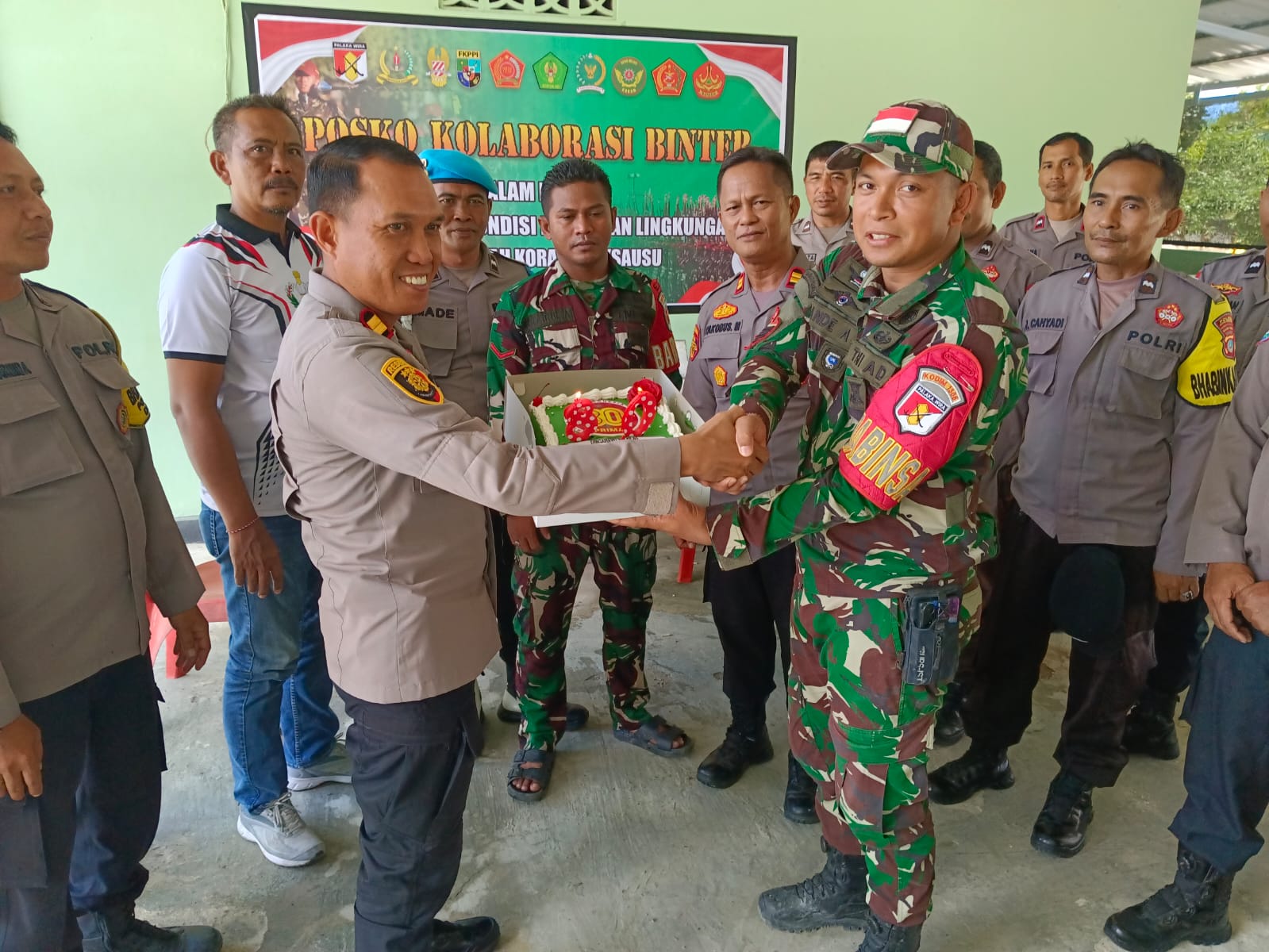 Dalam kesempatan tersebut, Kapolsek Sausu IPTU Yakobus Mangopo menyampaikan ucapan Selamat Ulang Tahun ke-80 kepada seluruh keluarga besar TNI, seraya menyampaikan apresiasi yang tinggi atas dedikasi prajurit TNI dalam menjaga keutuhan NKRI.