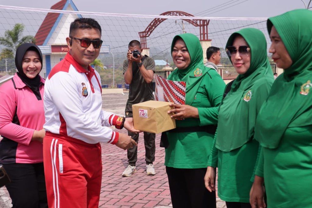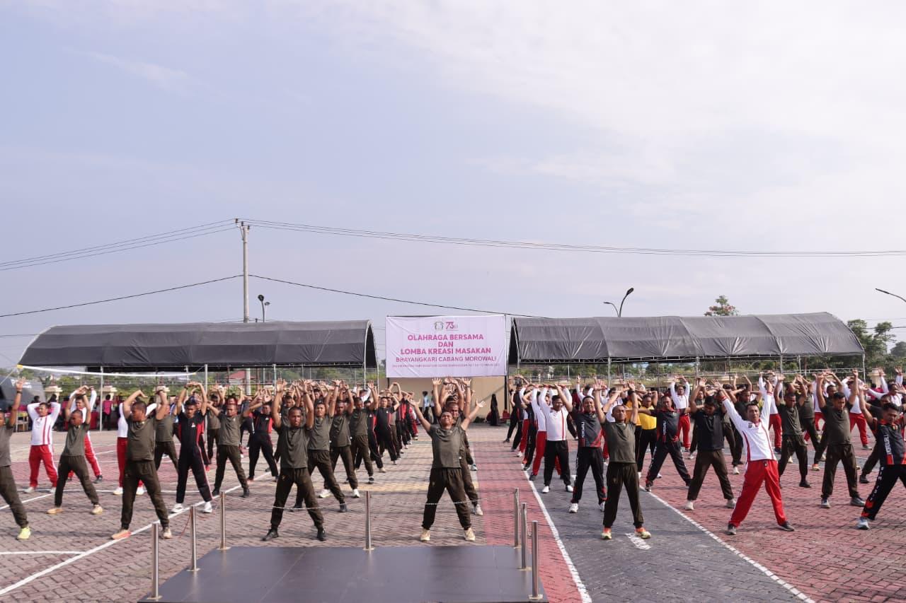 tribratanews, Morowali — Dalam rangka memperingati Hari Kesatuan Gerak Bhayangkari (HKGB) ke-73 Tahun 2025, Bhayangkari Cabang Morowali menggelar kegiatan olahraga bersama yang berlangsung meriah di halaman Polres Morowali, Jumat (10/10/2025) pagi.