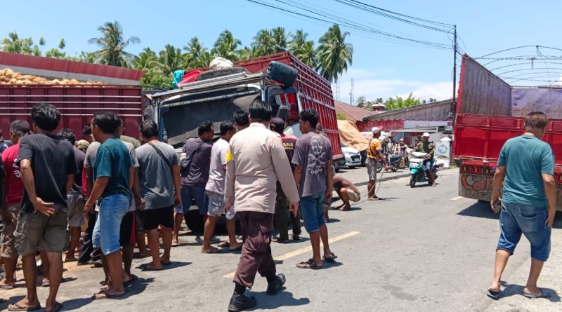 Polisi Evakuasi Truk Muat Kelapa Terguling di Bunta, Banggai
