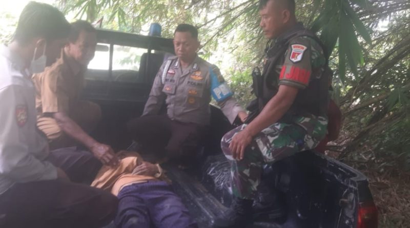 Personil Polsek Dampelas Sojol (Damsol) yang segera menuju lokasi kejadiam, jenazah korban kemudian dibawa menggunakan mobil patroli ke rumah duka.