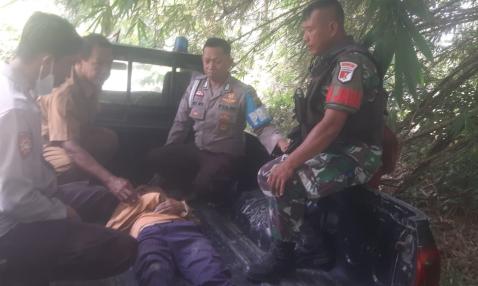 Personil Polsek Dampelas Sojol (Damsol) yang segera menuju lokasi kejadiam, jenazah korban kemudian dibawa menggunakan mobil patroli ke rumah duka.