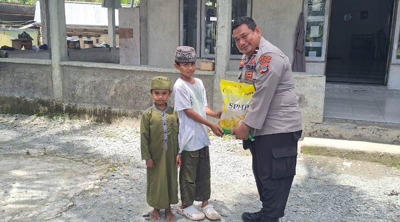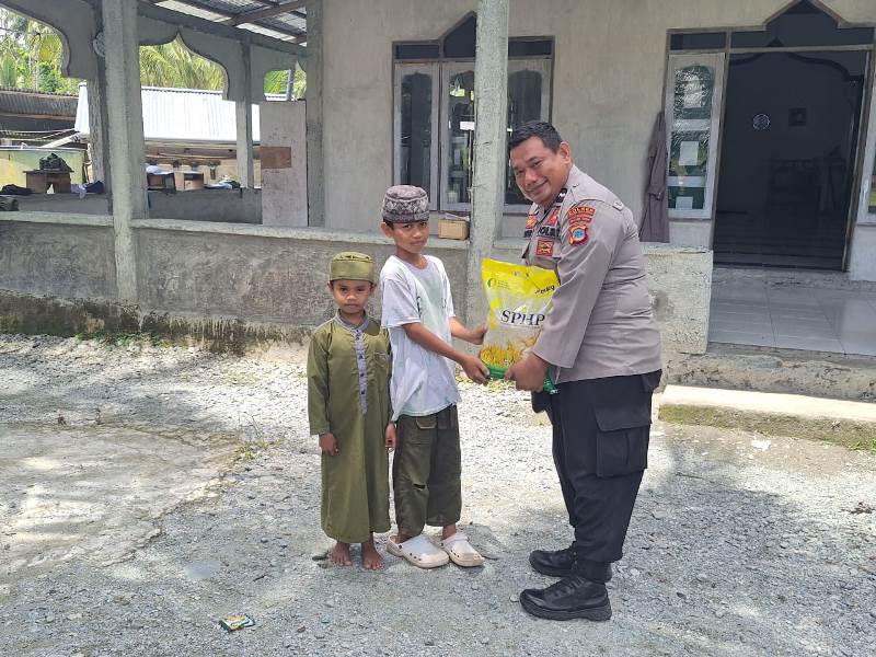 Selain pesan-pesan keamanan, kunjungan ini juga diwarnai dengan aksi sosial. Sat Binmas menyerahkan bantuan empat karung beras kepada Ponpes Miftahul Khoir, yang diterima langsung oleh pengasuh dan santri.