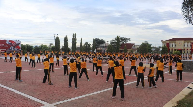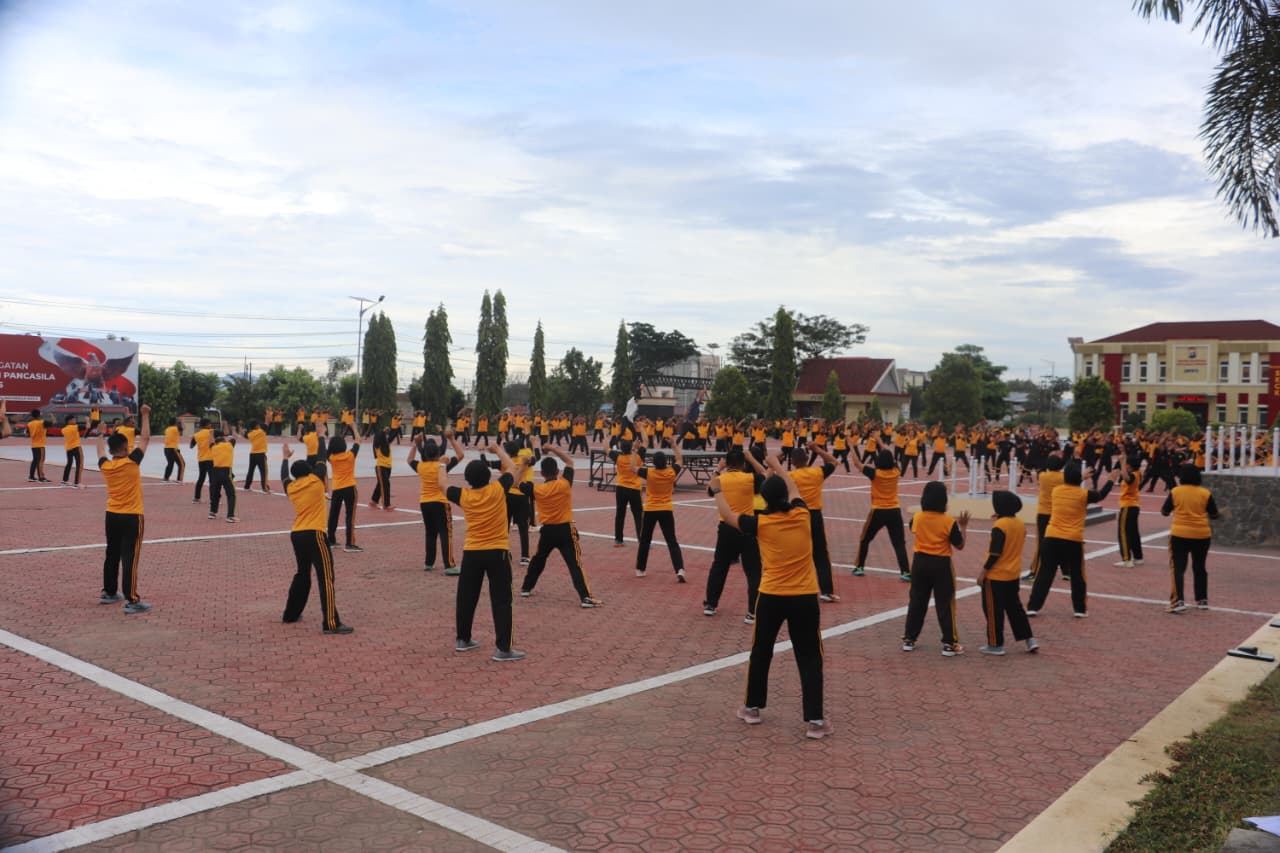 Personel Polda Sulteng Laksanakan Apel Pagi Dipimpin Dirlantas, Dilanjutkan dengan Olahraga Bersama Senam Aerobik