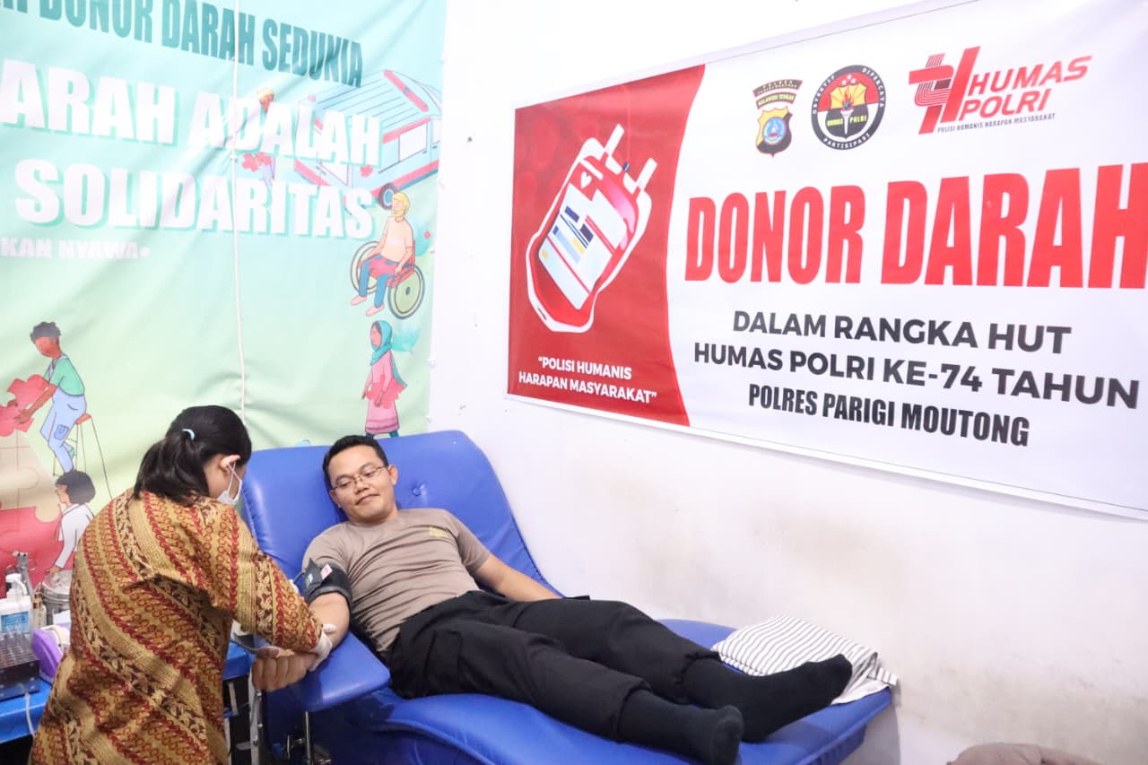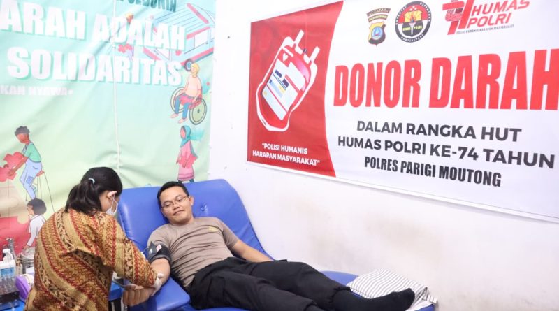 Polres Parigi Moutong Gelar Donor Darah Sambut Hari Jadi Humas Polri ke-74 Tahun 2025