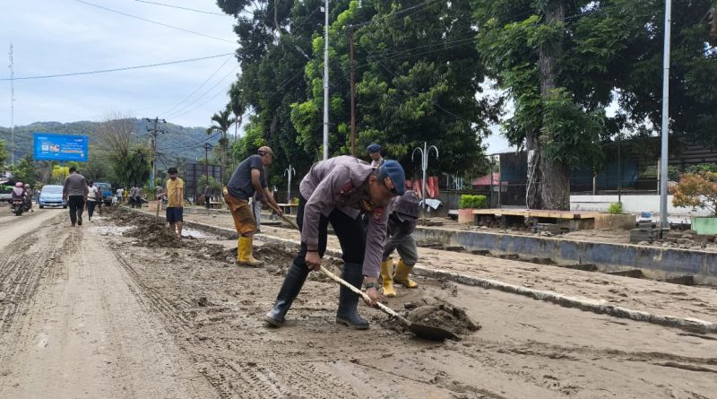 Brimob Sulteng Peduli, Kompi 4 Batalyon A Pelopor Gelar Aksi Bersih Pascabanjir