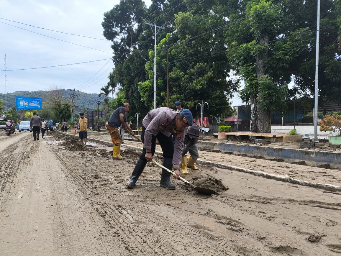 Dalam kegiatan tersebut, personel Brimob bergotong royong bersama warga membersihkan lumpur, sampah, dan material yang menumpuk akibat banjir. Selain itu, personel juga membantu membersihkan fasilitas umum dan pemukiman warga agar dapat kembali digunakan dengan aman dan nyaman.