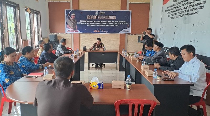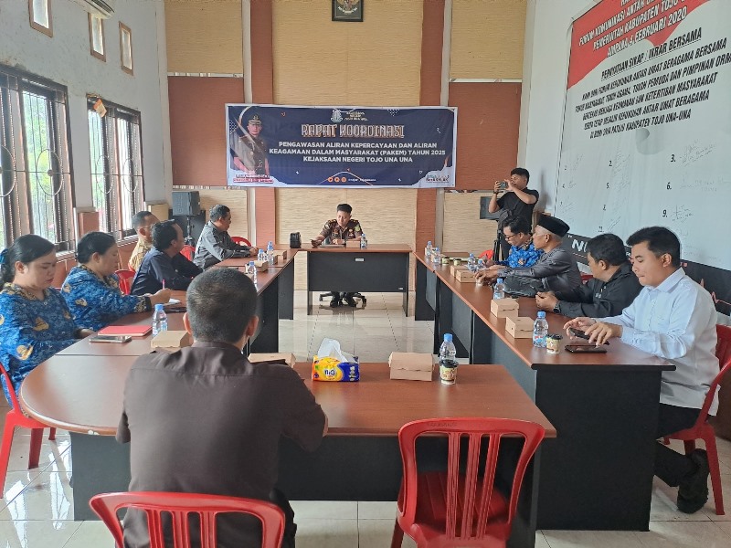 Hal tersebut disampaikan dalam Rapat Koordinasi Pengawasan Aliran Kepercayaan dan Aliran Keagamaan dalam Masyarakat (PAKEM) Tahun 2025 yang diselenggarakan oleh Kejaksaan Negeri Tojo Una Una, Senin (10/11/2025) bertempat di Aula Kantor Badan Kesatuan Bangsa dan Politik Kab. Touna.