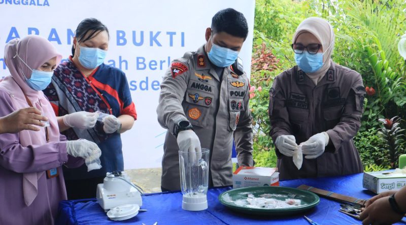 Nampak AKBP Angga Dewanto Basari,S.I.K.,M.Si bersama Kepala Kejaksaan Negeri Donggala Ibu Andi Reny Rummana,S.H.,M.H simbolis memusnahkan barang bukti tersebut.