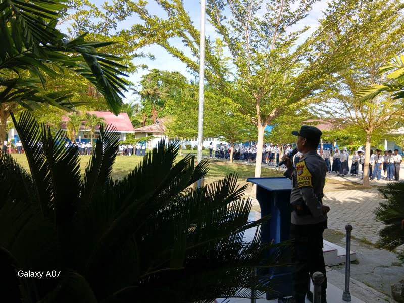 Didampingi Bhabinkamtibmas dan personel lainnya, kehadiran Iptu Maryanto disambut hangat oleh Kepala Sekolah Jamila Lapatoro, S.Pd., dewan guru, dan seluruh siswa. Dalam amanatnya, Kapolsek fokus menyampaikan pesan tentang kedisiplinan, keselamatan, dan bahaya kriminalitas.
