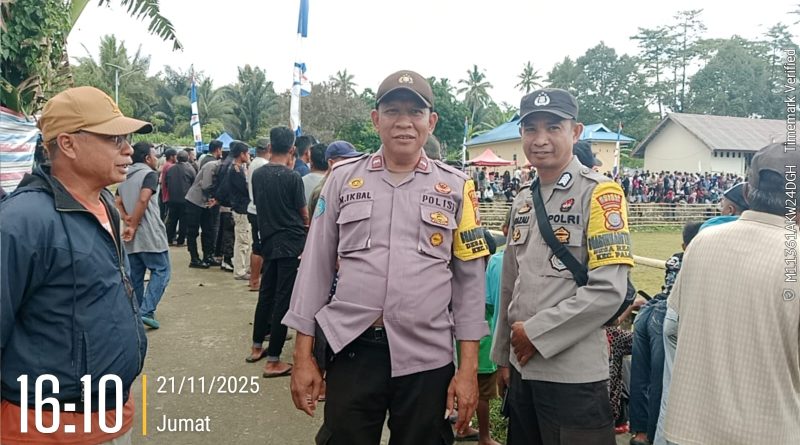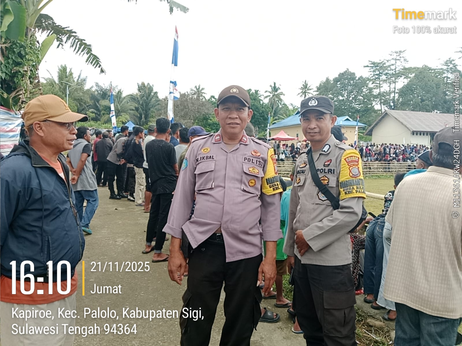 Tribratanews, Sigi — Pada Jumat, 21 November 2025 sekitar pukul 16.10 WITA, Bhabinkamtibmas Desa Kapiroe, Kecamatan Palolo, Kabupaten Sigi, AIPDA M. Ikbal, melaksanakan pengamanan kegiatan Turnamen Sepak Bola Kapiroe Cup yang berlangsung di Lapangan Benunu Putra, Desa Kapiroe.
