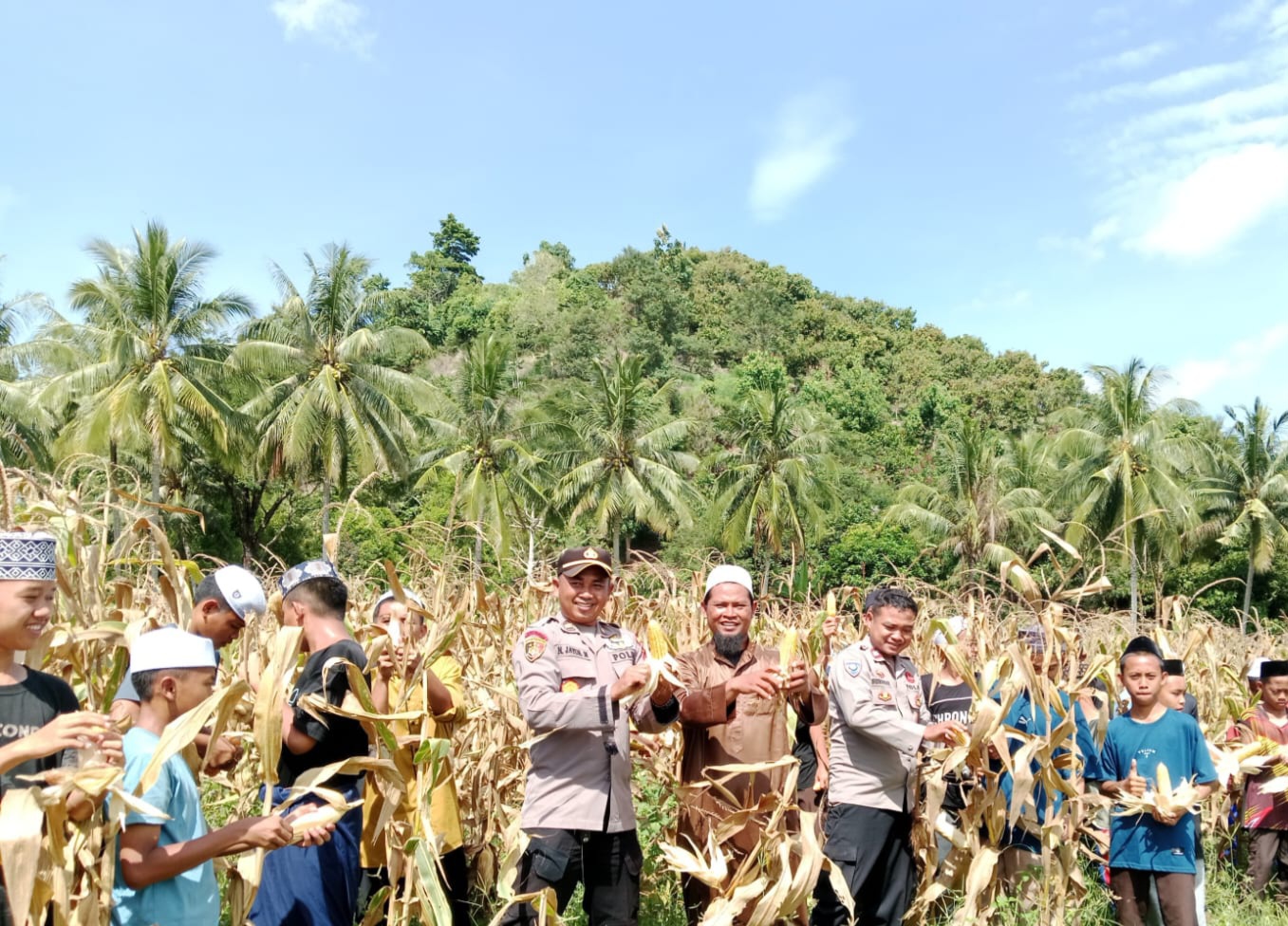 Kapolsek Bolano Lambunu Ikut Panen Jagung Bersama Santri Ponpes Darul Ma’arif