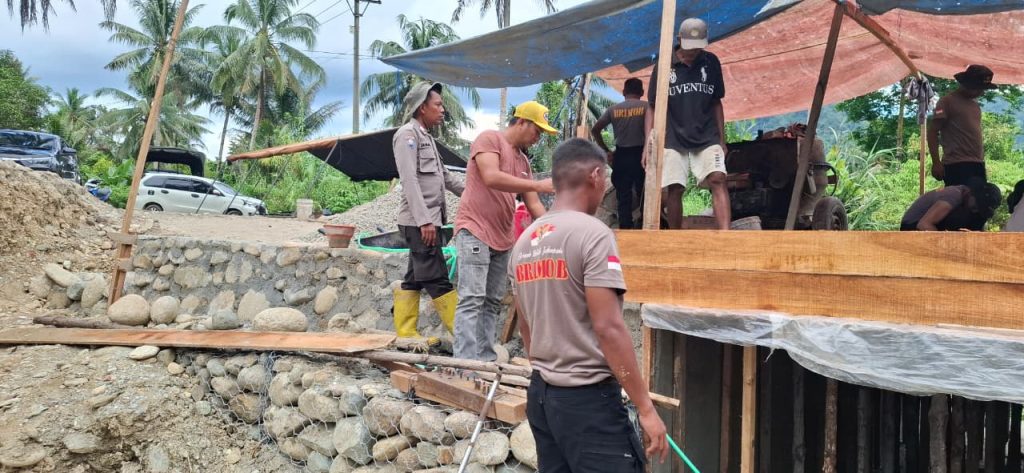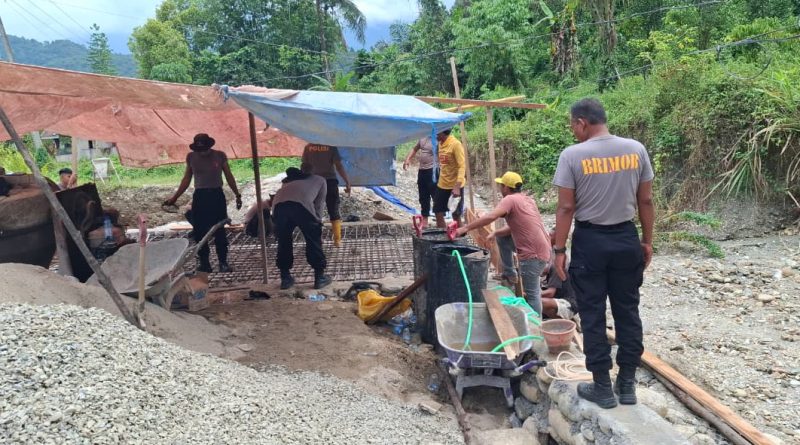 Personil Polsek Basidondo dan Brimob Polda Sulteng Gotong Royong Bangun Jembatan di Desa Silondou, Wujudkan Instruksi Presiden Pembangunan 300.000 Jembatan