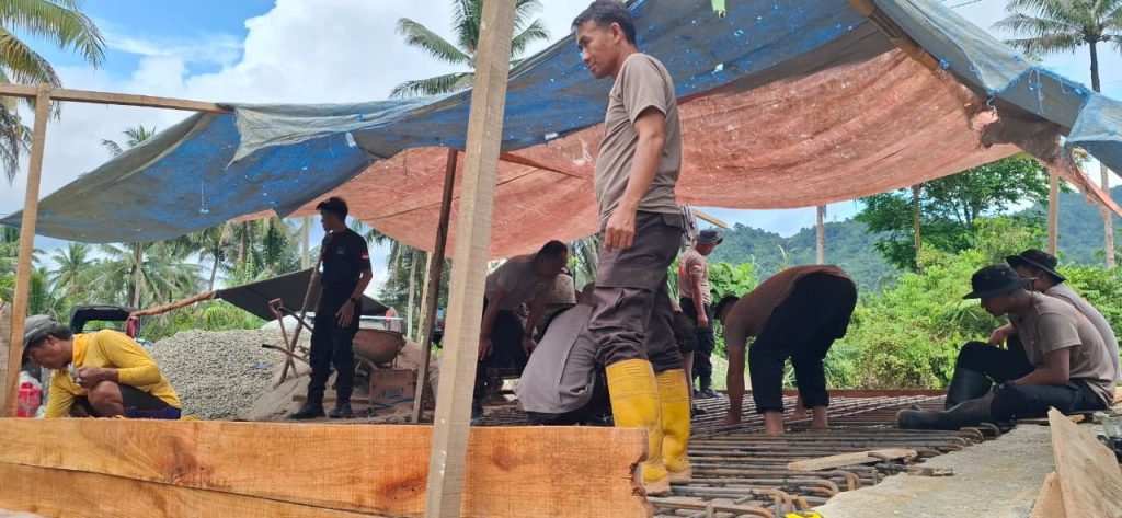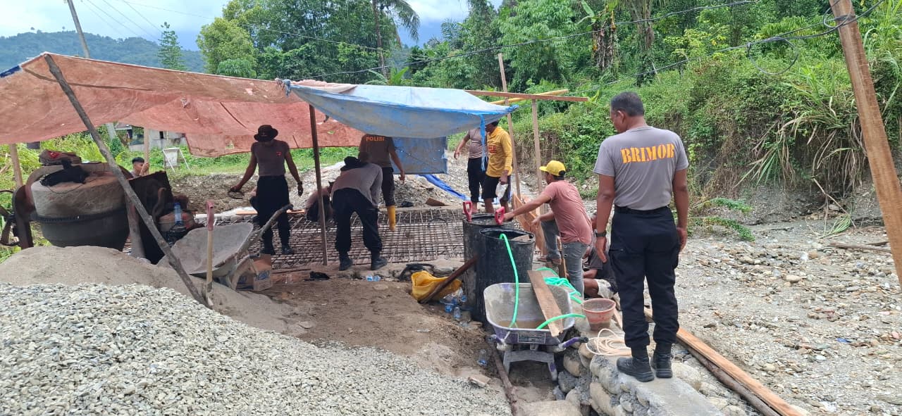 “Kami hadir langsung di lapangan bukan hanya untuk membantu proses pembangunan, tetapi juga memastikan pelaksanaannya berjalan lancar, aman, dan tepat sasaran. Jembatan ini sangat dibutuhkan masyarakat, dan kami berkomitmen mendukung penuh penyelesaiannya,” ujar Kapolsek.