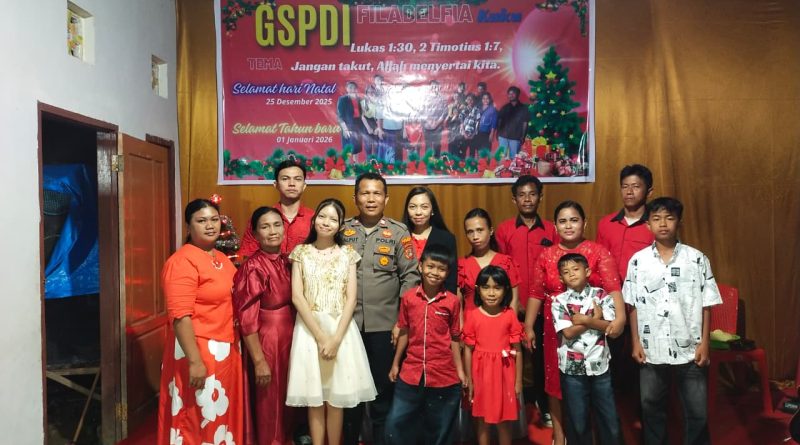 Tribratanews Poso – (3/12/2025) — Rohaniawan Kamtibmas Polri, Aiptu Halput Tarusu, S.Th melaksanakan kegiatan sambang silaturahmi Natal kepada para tokoh dan masyarakat di wilayah Kecamatan Pamona Utara, Kabupaten Poso. Kegiatan berlangsung pukul 18.00 Wita dalam suasana ibadah Natal di GSPDI Filadelfia Kuku, yang turut dihadiri Pendeta Evans Raintama, S.Th serta jemaat gereja lainnya.