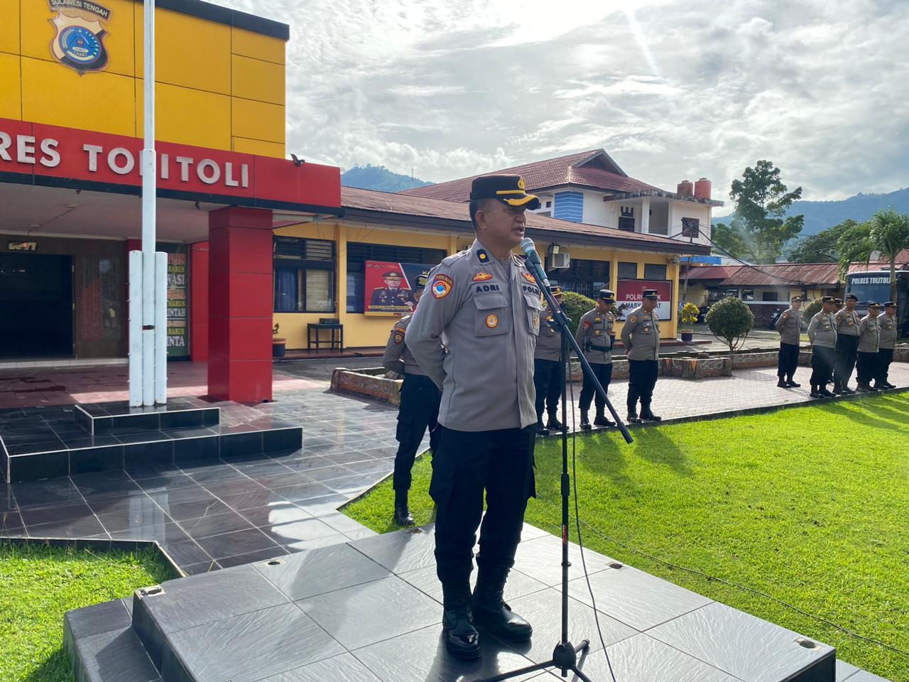 Kegiatan tersebut dilaksanakan pada apel pagi, Selasa, 16 Desember 2025, bertempat di lapangan apel Mapolres Tolitoli, dan diikuti oleh seluruh pejabat utama, perwira, bintara, serta ASN Polres Tolitoli.
