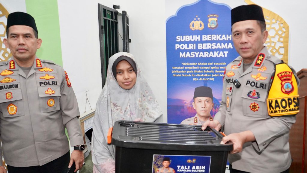 Tribratanews, Palu – Kapolda Sulawesi Tengah Irjen Pol Dr Endi Sutendi kembali melaksanakan safari kamtibmas melalui kegiatan bertajuk “Subuh Berkah” Polri bersama masyarakat yang berlangsung di Masjid Ulil Albab Universitas Muhammadiyah (Unismuh) Palu, Sabtu (20/12/2025).