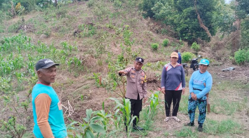 Bhabinkamtibmas Sausu Pakareme Terjun Langsung Pantau dan Rawat Lahan Jagung Binaan Ketahanan Pangan